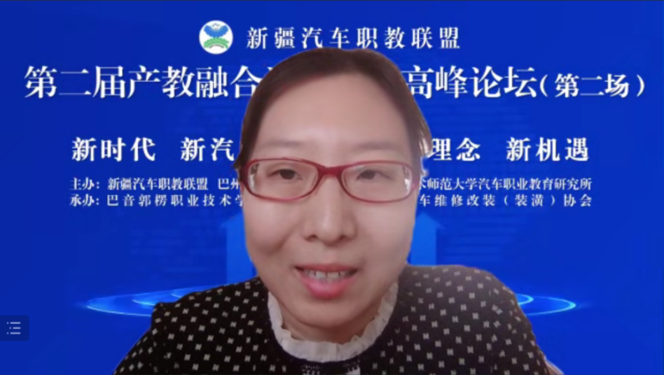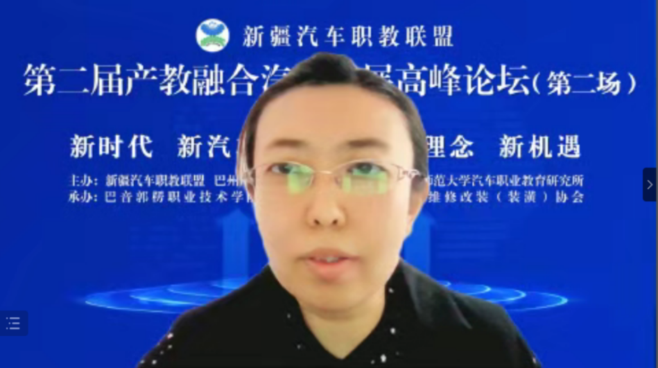 徐工汉云技术股份有限公司新疆产教融合负责人、新疆维吾尔自治区汽车维修改装(装潢)协会副会长鄂晶晶讲授“基于产教融合的双师型教师团队建设”